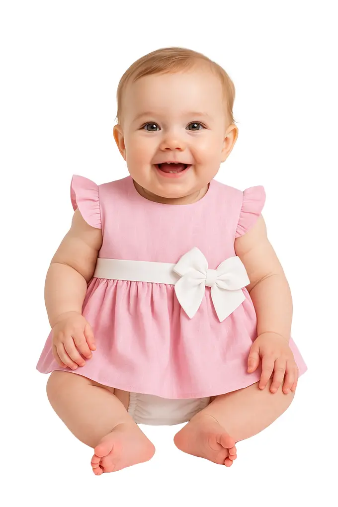 Elegância artesanal para o teu pequeno tesouro! Este macacão da prestigiada marca Fiil Fashionwear® combina a suavidade do algodão com bordados artesanais únicos, criando uma peça de arte vestível que celebra a tradição têxtil portuguesa.